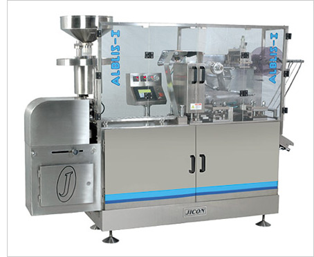 ALBLIS is a versatile ‘Flat Plate’ intermittent motion automatic blister packing machine that can produce Alu-Alu blister packs by cold forming method as well as PVC-Alu blister packs by thermoforming method. This machine is utilized for packing of smaller and regular shaped solid articles such as pharmaceutical Tablets, Capsules, Dragees etc. in Alu-Alu or PVC-Alu blister packs. This Machine can also be used for packing of Ampoules, Vials, Tubes in PVC-Alu blister packs. The Blister Forming, Sealing, Indexing and Punching operations are of intermittent reciprocating motion. Various types and styles of product feeding devices are offered to suit different application.