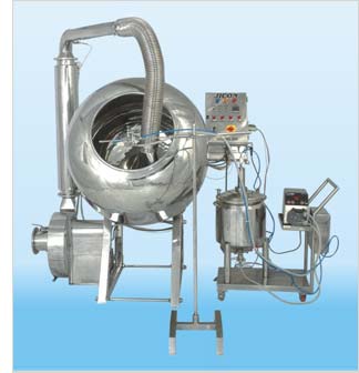 The product is to be filled inside the pan. During the rotation motion of the pan, coating material is sprayed by spraying system. At the same time hot air is supplied through inbuilt Hot air blower system which dries the coat rapidly. Thus a solid and smooth surface is formed over the product.