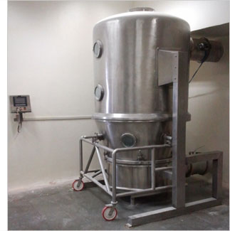 The Fluid Bed Dryer has a bed of solid particles which are fluidized by passing a stream of air upward through a specially designed perforated sheet. The upward velocity of air is so maintained so as to slightly lift the solid particles and set them in motion. This motion can be utilized to bring about mixing as well as forward movement of the solids particles. The air is heated and the hot air evaporates the fluid and dries the solids.